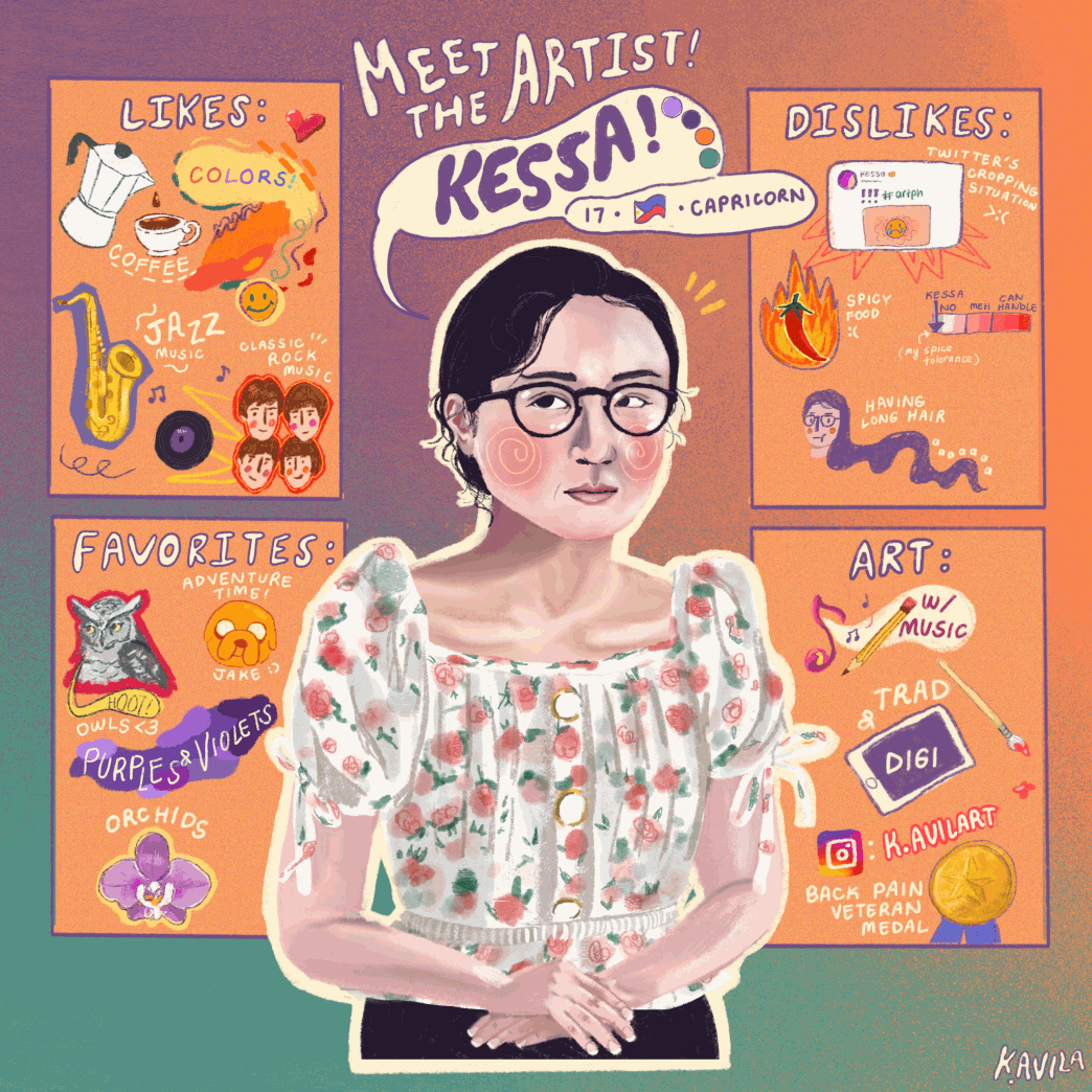 I'm Kessa, a Filipino illustrator, designer, photographer, and admirer of all things vibrant!I'm a BFA Information Design graduate from Ateneo de Manila University and I enjoy working with both traditional and digital mediums.Feel free to check out works or contact me if you wish to reach out!Want to see more of what I've done?